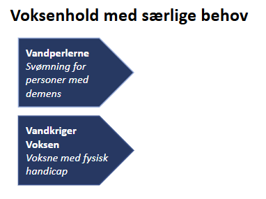Voksen Vandkriger er et tilbud til voksne med fysiske handicap, eksempelvis cerebral parese, synsnedsættelse eller amputation af arm eller ben. Holdet svømmer på bane 1, og der er altid livreddende opsyn. Der er desuden en træner til stede på bassinkanten, som kan hjælpe med at hente udstyr efter behov.